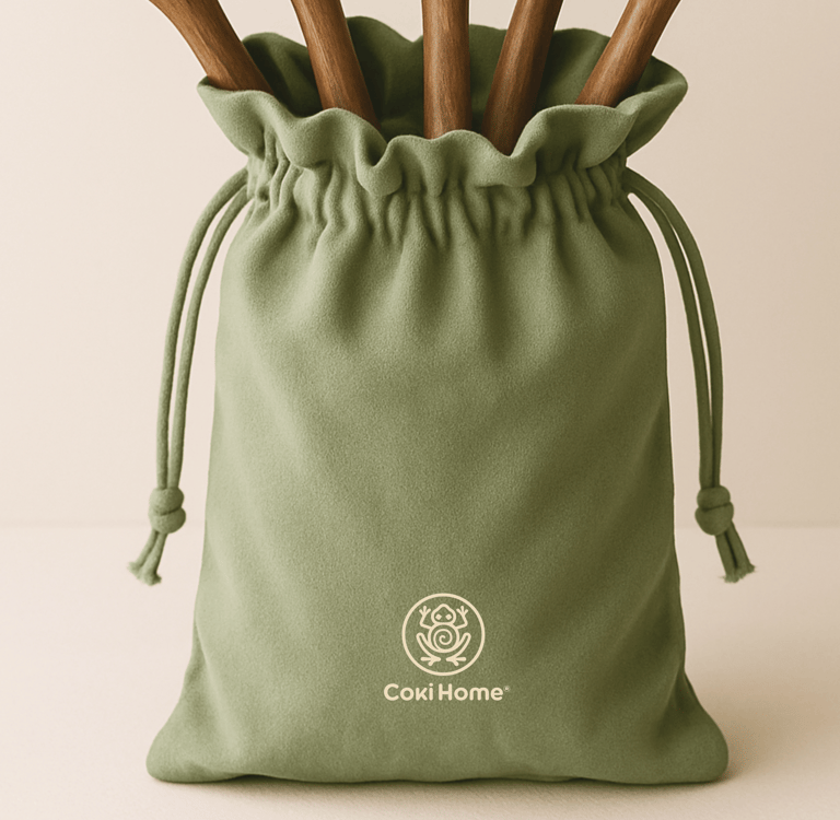 Cada set de Coki Home viene en una suave bolsa reutilizable que transmite una sensación tan especial como su contenido. Más que un simple empaque, es un recuerdo para compartir con familiares y amigos, algo que lleva calidez, cariño y un toque de la magia del coquí a cada hogar.